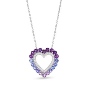Vibrant Shades Amethyst, Tanzanite, White Sapphire Heart Necklace Sterling Silver 18″